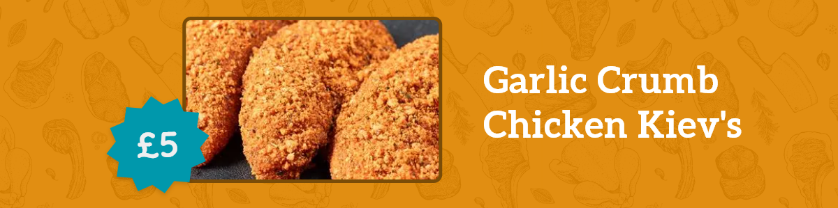 Garlic Crumb Chicken Kiev's - £5.00